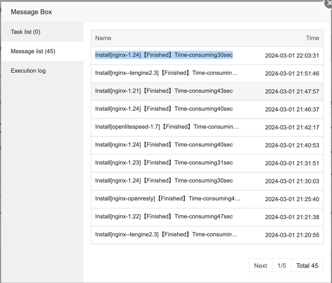 aaPanel_Kern dotrungquan Hello, what is your operating system and version? Is it normal to try to manually execute the command installation? cd /www/server/panel/install/ wget https://node.aapanel.com/install/0/nginx.sh bash -x nginx.sh install 1.24