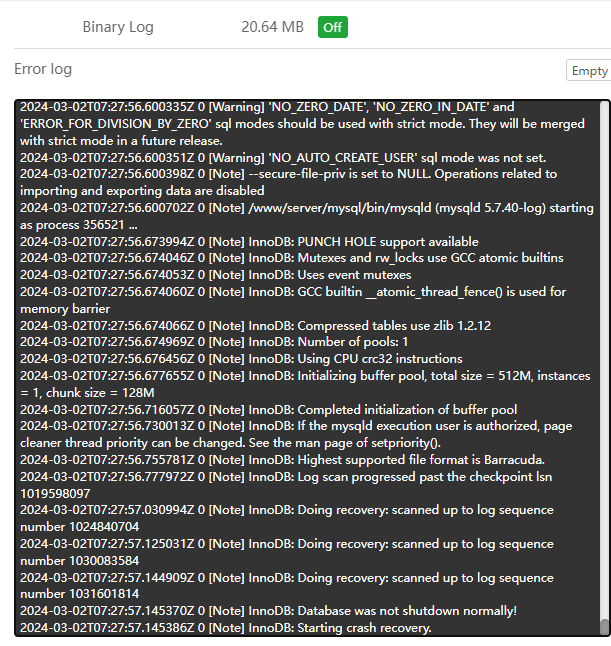 aaPanel_Kern Hello, mysql stopped automatically, usually due to insufficient system resources and the system shut down. View system log dmesg|grep -E "kill|mysql|oom" vinspedia