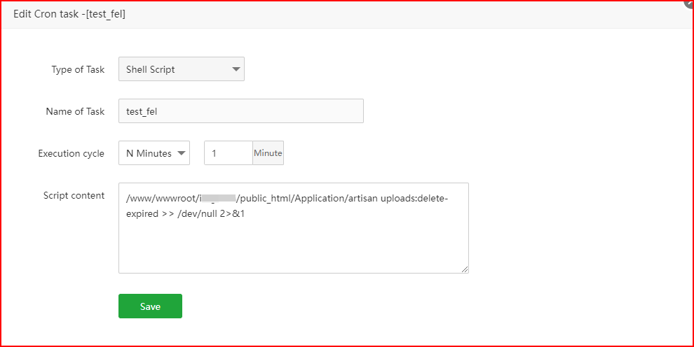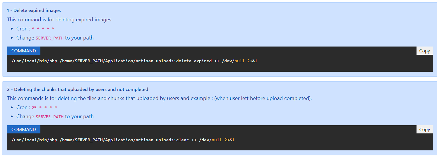 /usr/local/bin/php /home/SERVER_PATH/Application/artisan uploads:delete-expired >> /dev/null 2>&1