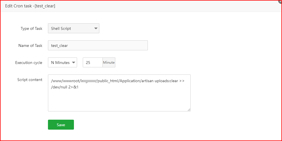 /usr/local/bin/php /home/SERVER_PATH/Application/artisan uploads:clear >> /dev/null 2>&1