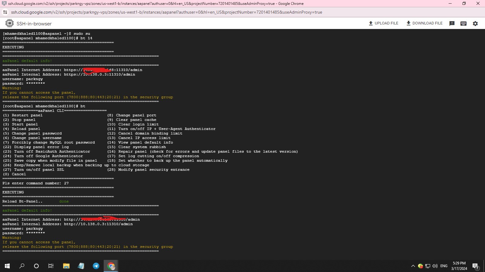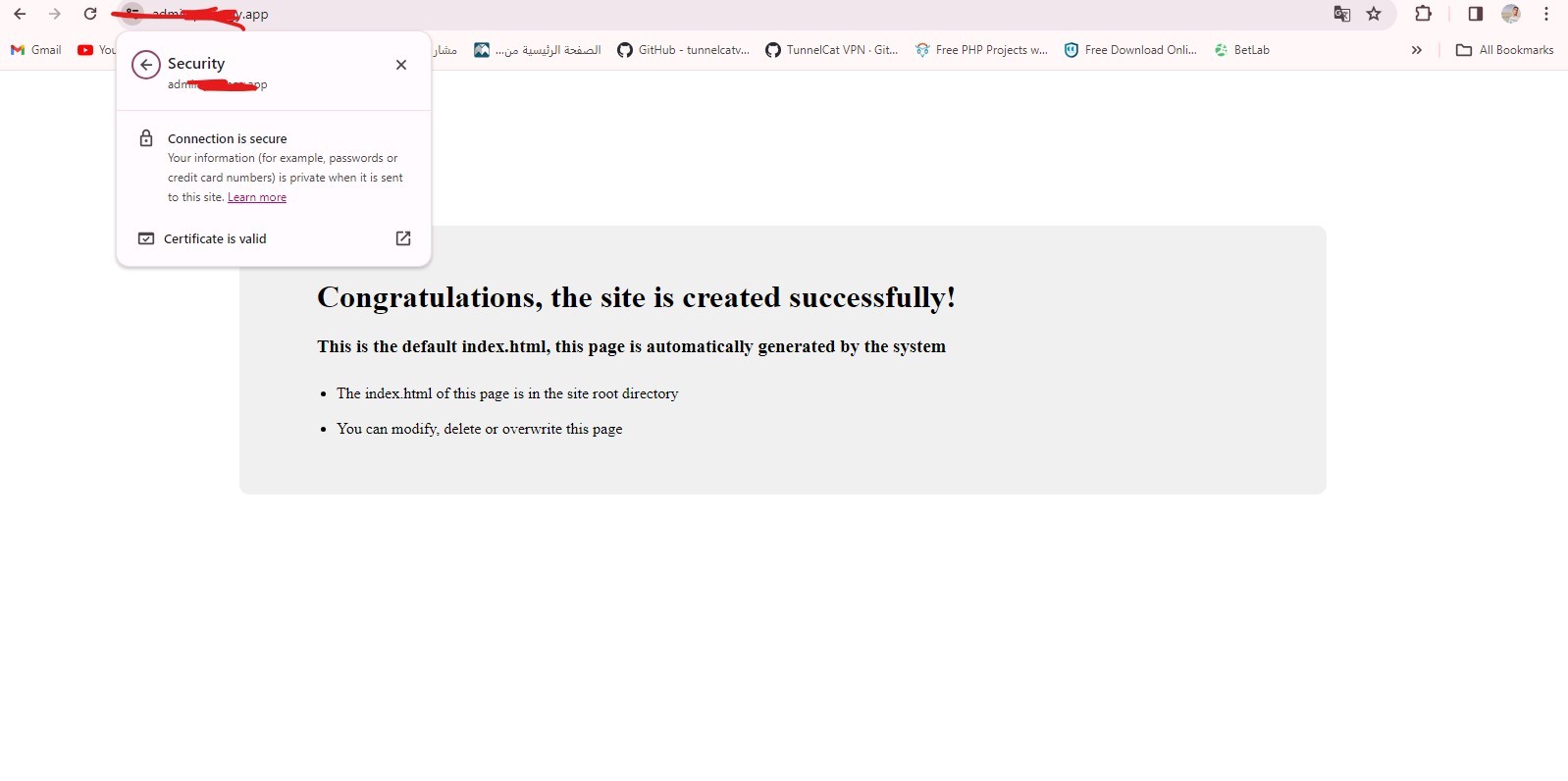 aaPanel_Kern Hello, this is because the domain name used by the website and the panel is the same main domain name, but the certificate of the panel does not match the domain name. It is recommended that you cancel the domain name binding first and use IP access. If you need to use a domain name, please configure the matching certificate in the panel settings. aaP_mhamedkhaled1100