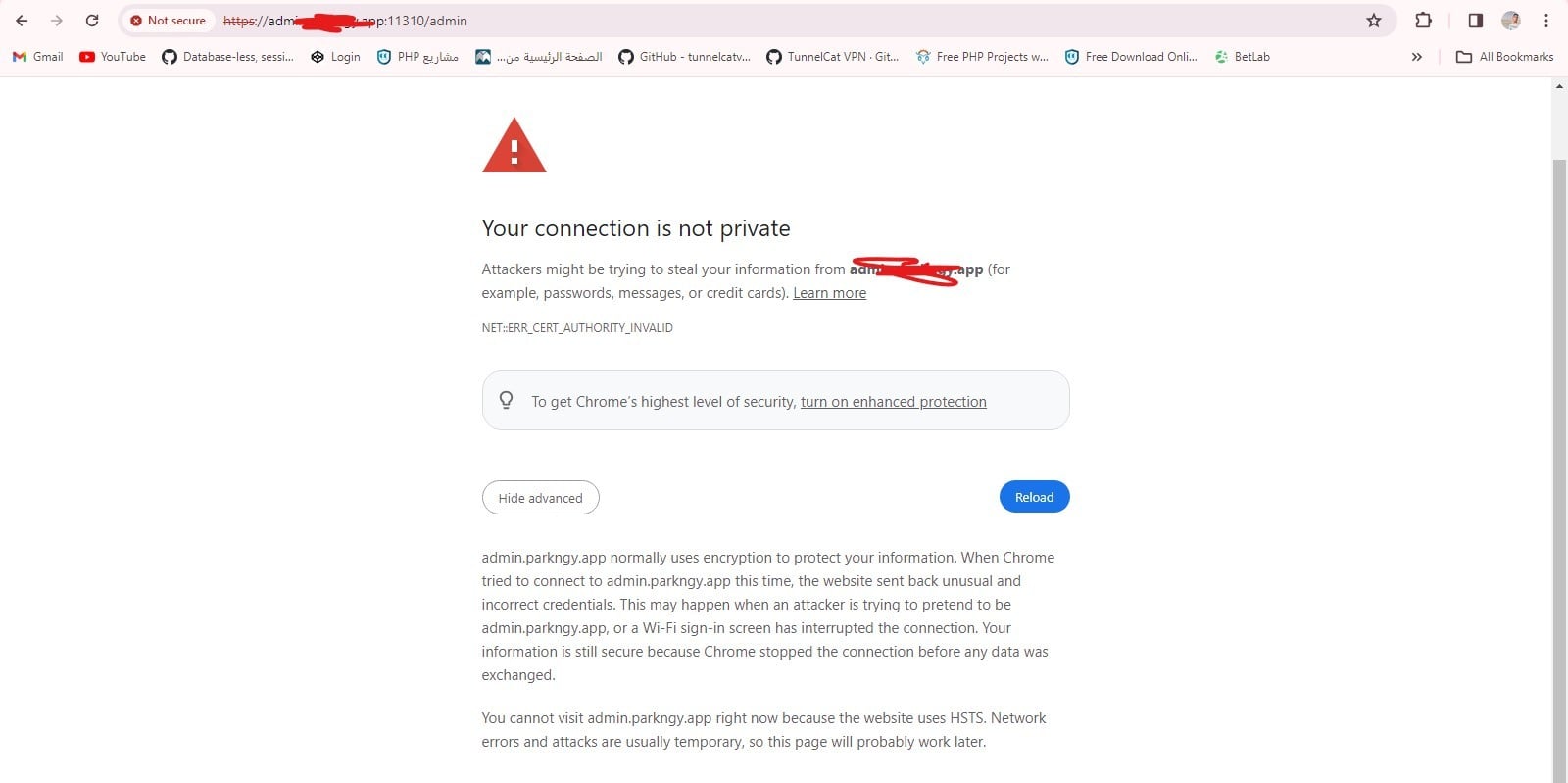 aaP_mhamedkhaled1100 Thanks, I opened it, but I changed the admin panel domain again and this error appears Please note that the site has an SSL certificate as shown