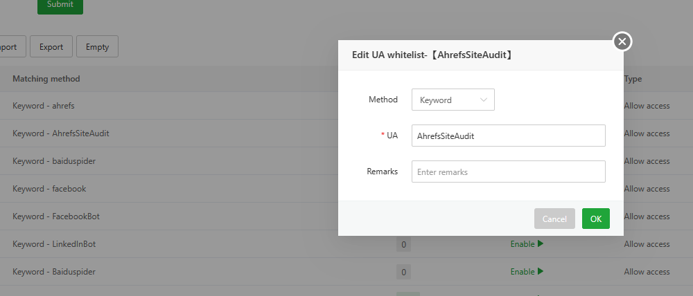 aaP_kienvictory aaPanel_Kern Ahrefs provides 2 UA as shown below, I entered both AhrefsBot and AhrefsSiteAudit in the UA section but it doesn't work. In your opinion, how should I enter it correctly?