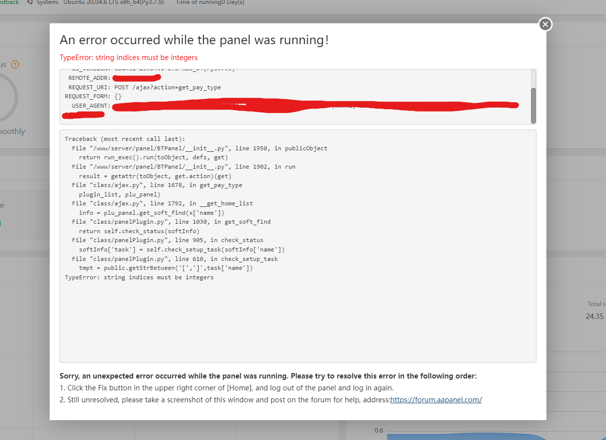 Try to find under /www/backup/panel/ latest compressed files Then extract out to find the data/default.db The file cover /www/server/panel/data/default.db The restart the panel again whether can solve?