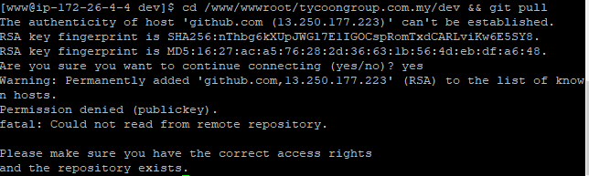 patdevs How can I perform git pull although I am apache user because I keep encounter authentication fail when I try to perform shell_exec from my php source code.