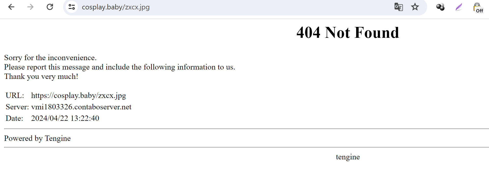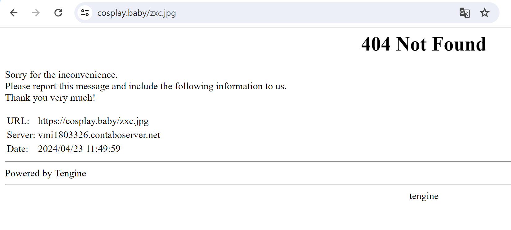 sanhpv I want when accessing the error file it only displays error 404, I don't want to display this paragraph, (URL: https://cosplay.baby/xzcx.jpg Server: vmi1803326.contaboserver.net Date: 2024/04/23 05:55:03 Powered by Tengine) How do I delete it?