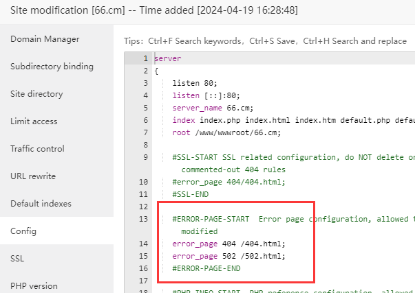 aaPanel_Kern sanhpv Hello, try to modify this configuration file and the 404.html file in the site directory. If it does not work, it is recommended that you check whether a CDN is used?