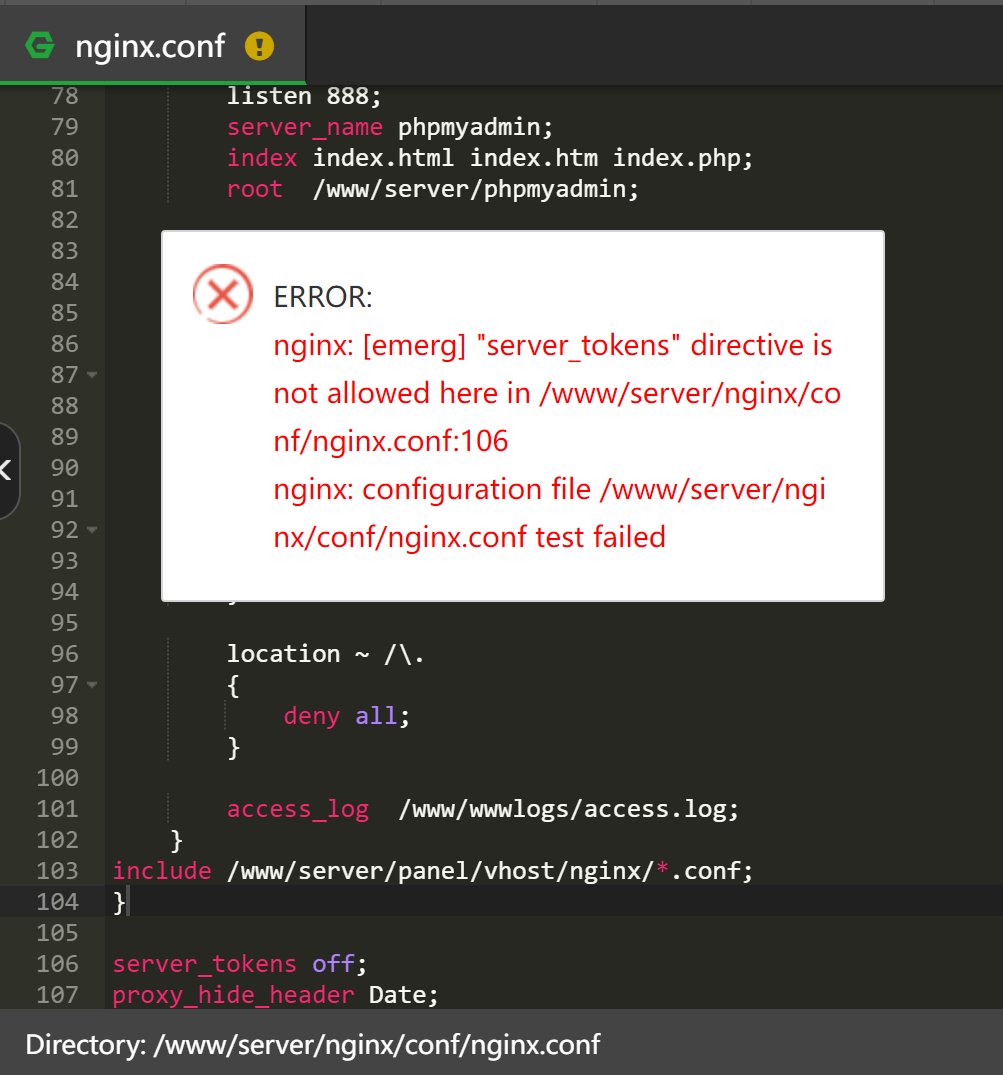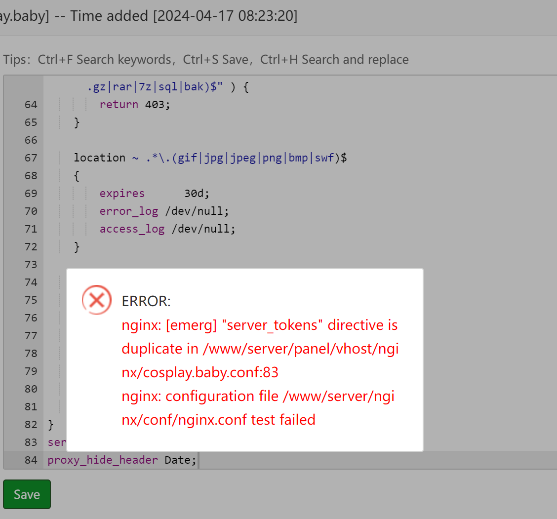 aaPanel_Kern Please add it in the nginx configuration file, not the website configuration file. sanhpv