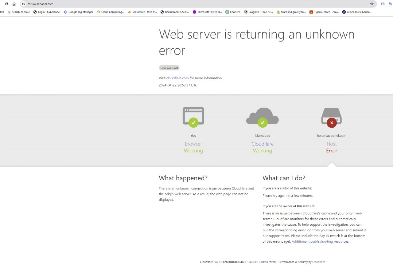 aaP_riazeeshan Dear Team aapanel, i am facing error code 520, unable to access the aaPanel Forum, is there any reason, please suggest the solution !