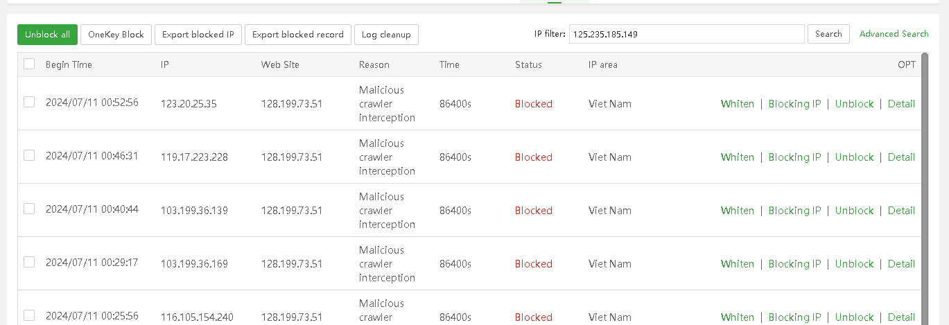 i don't see any difference between Export blocked IP and Export Blocked record. Please export all columns that it has, i need more information to block ddos ip.