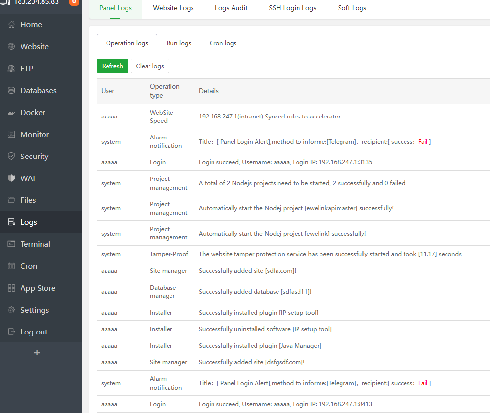 This type of log... It possible to view this type of log for panel that includes all requests between browser and panel...?