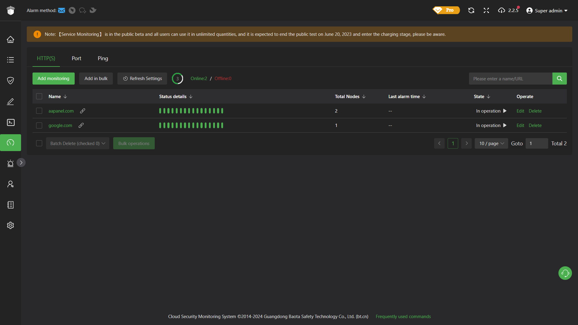 Hi, I have seen in a new Product named BT-Monitor on https://www.bt.cn/new/product/cloud_monitor.html which is useful to manage multiple servers. But unfortunately, it is in Chinese.