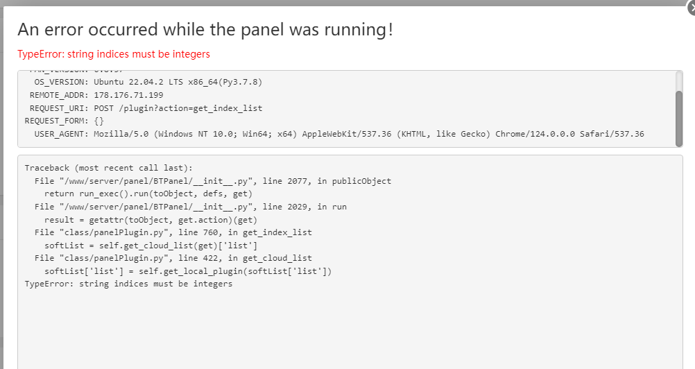File "/www/server/panel/BTPanel/init.py", line 2077, in publicObject