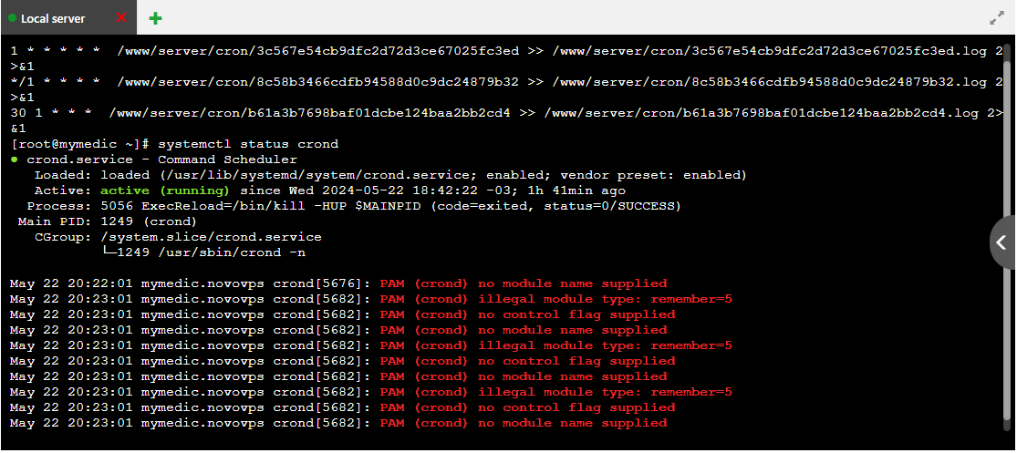 Mymedic_Sis I don't understand much about Linux servers, just the basics, but I used the commands yum reinstall crontabs systemctl restart crond systemctl status crond systemctl enable crond however, nothing resolved! Please help me