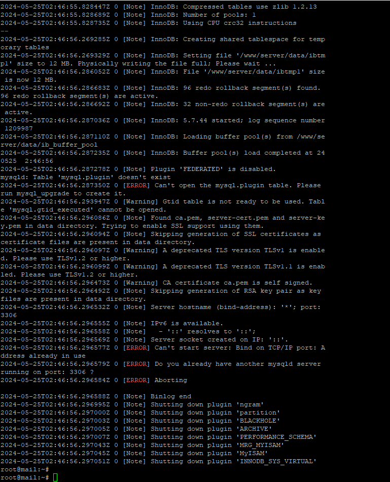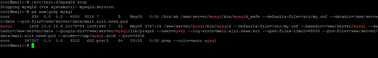 aaPanel_Kern Try taking a snapshot backup of the server before proceeding. /etc/init.d/mysqld stop ps aux|grep mysql aaP_boodyahmed2001k