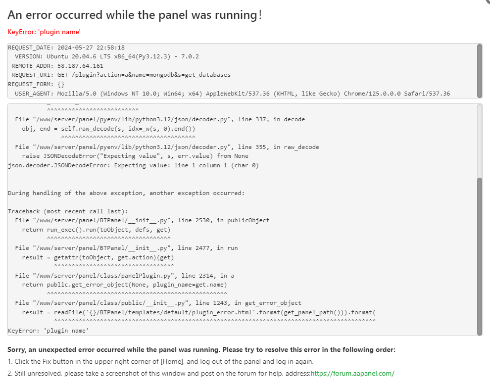 Hi, can you give us your aapanel information? The server makes a snapshot backup first, if possible, please send it to kern@aapanel.com.
