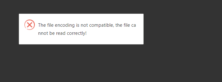 "The file encoding is not compatible, the file cannot be read correctly!"