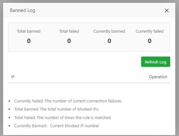 I even set the retry on fail to ban to 2 to 5 to test if it blocks any requests at all but its completely dead and doesn't do anything. I have restarted it, reloaded it reinstalled it many times and it doesn't work at all