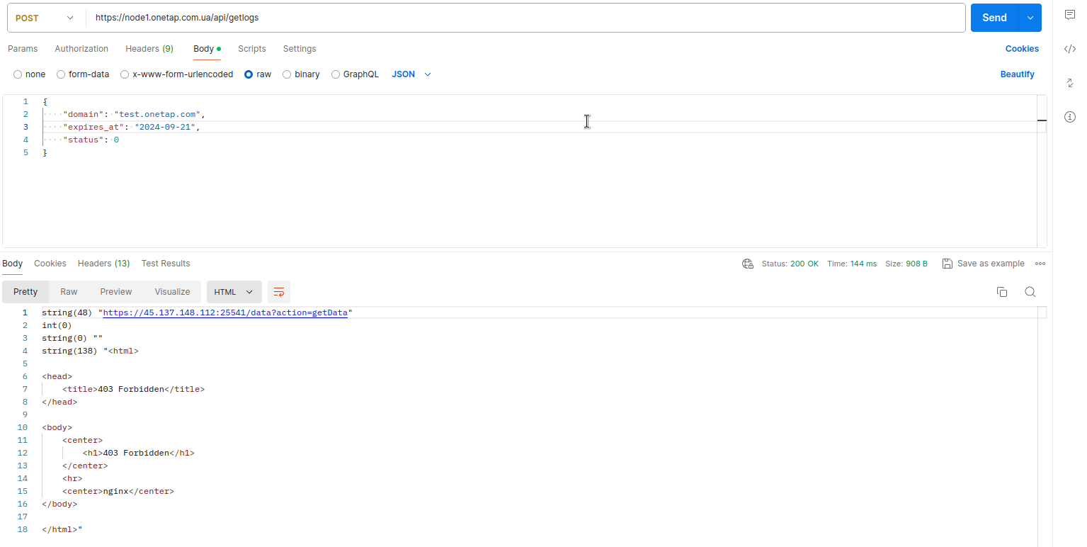 Also, when I removed domain access I've got {"status": false, "msg": "20 consecutive verification failures, prohibited for 1 hour[45.137.148.112]"}