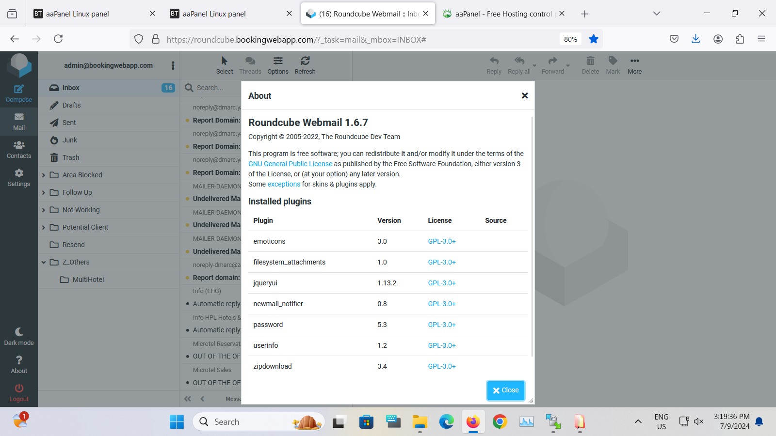 Hello. As of now, July 9, 2024. Installing roundcube in aaPanel has version of 1.5.0. But now the roundcube website has stable version of 1.6.7