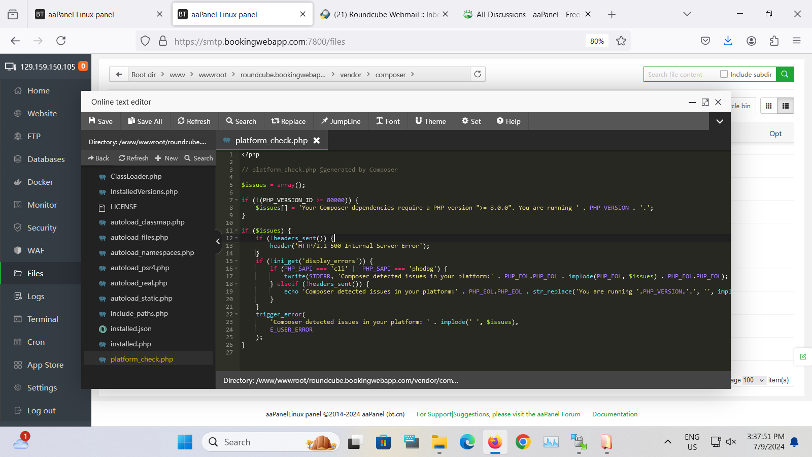If you have problem with composer and it requires you a selected PHP version, you can modify it through editing your platform_check.php file.