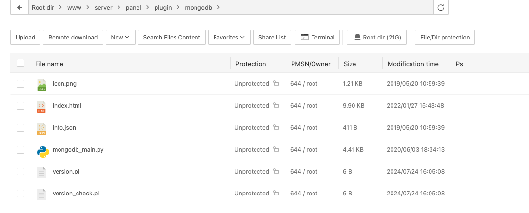 File "/www/server/panel/plugin/mongodb/mongodb_main.py", line 19, in get_databases