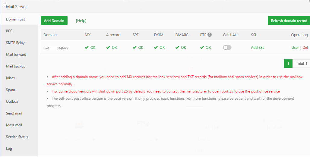 aaPanel_Kern Hello, you can go to the menu of the mail server and modify the restrictions in the domain name. aaP_mihonukr