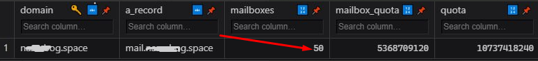 aaP_mihonukr Solution: Download /www/vmail/postfixadmin.db on local PC Open postfixadmin.db on DB Browser fro SQLite Change value 50 mailboxes to 500 Download postfixadmin.db on server.
