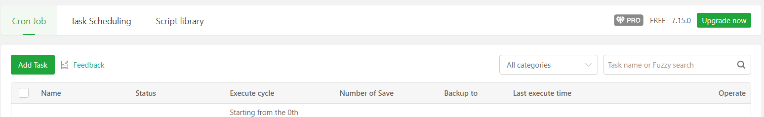 aaP_soft_developer2k hello aaPanel Team i testing aaPanel its working good , but when i click Cron its show all Task List , but ** i cant sort it a to z by name , Status , Time of Executing ** . please add cron short option in aaPanel