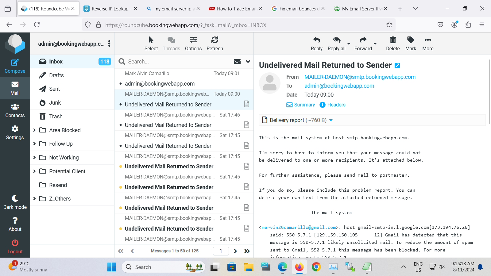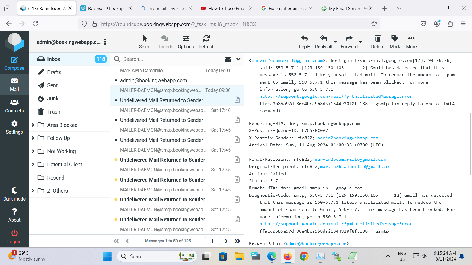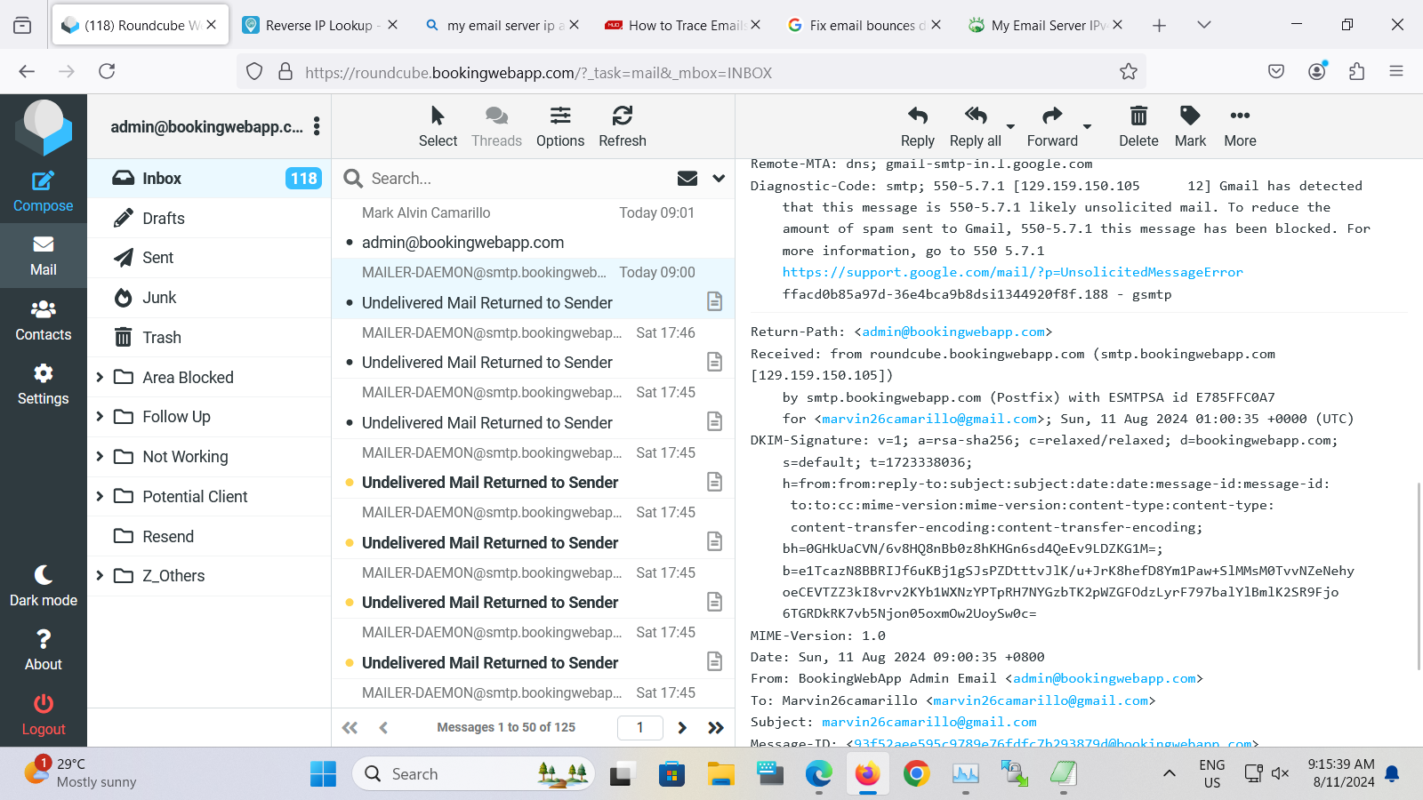 DNS entry does 550-5.7.25 not match the sending IP. As a policy, Gmail does