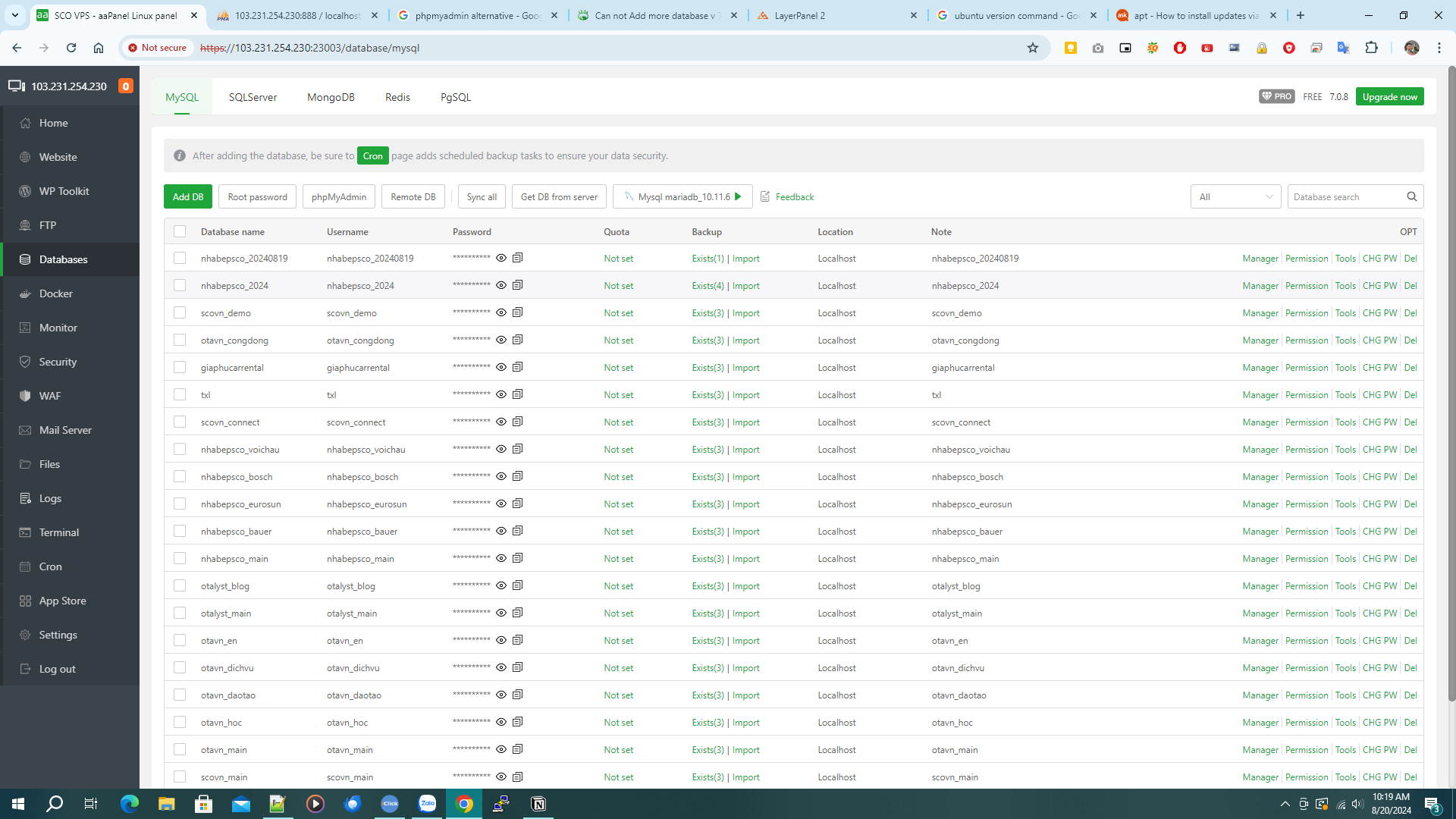 aaPanel_Kern Hello, would you like to check if mysql is running normally? Is it normal to try adding using phpmyadmin? aaP_web2