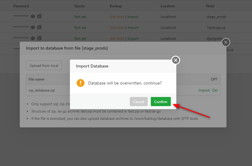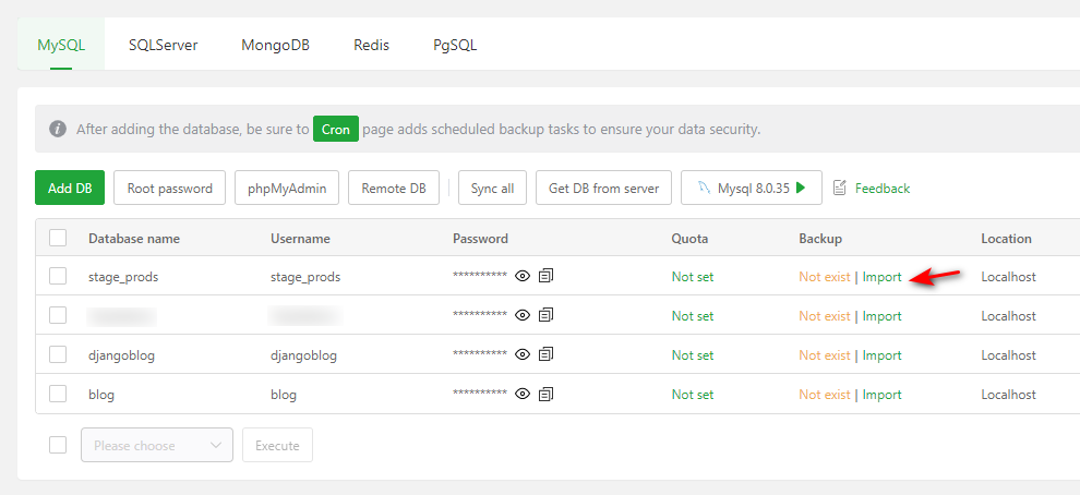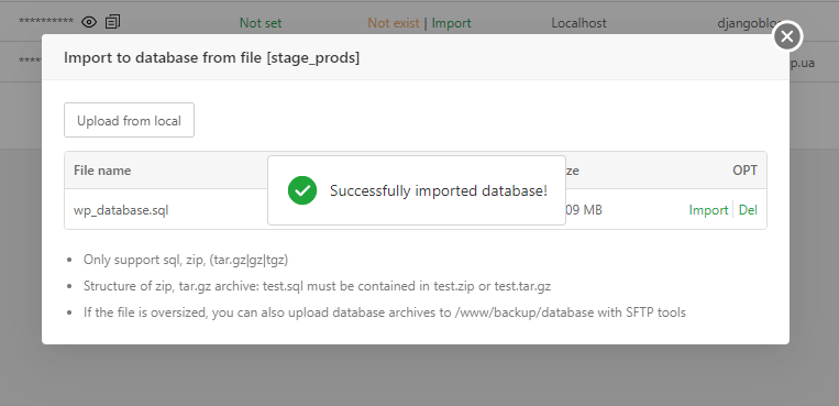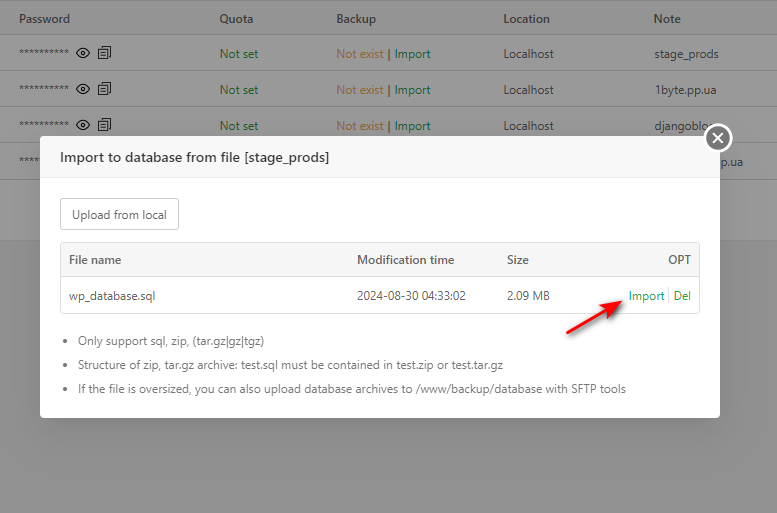 Is there an easier way to import database in the aaPanel or through my phpmyadmin?