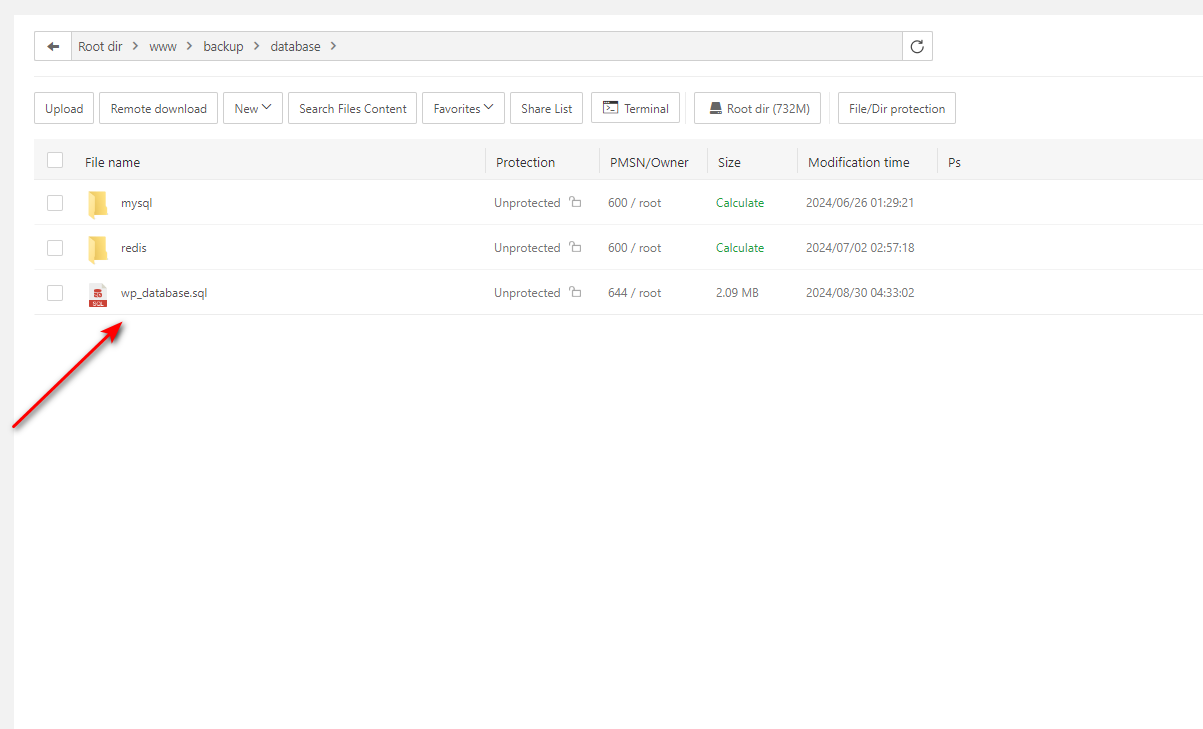Then I ran this command mysql -u <username of my database> -p <password of my database> <folder name that is already created> < /www/backup/database/db_admin_flarumwb_20240829_034033.sql