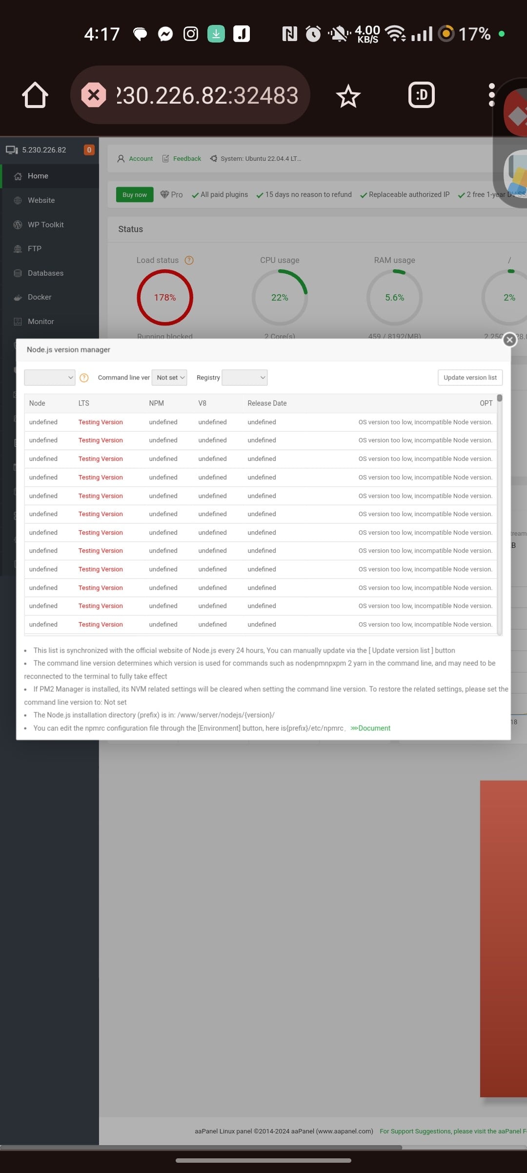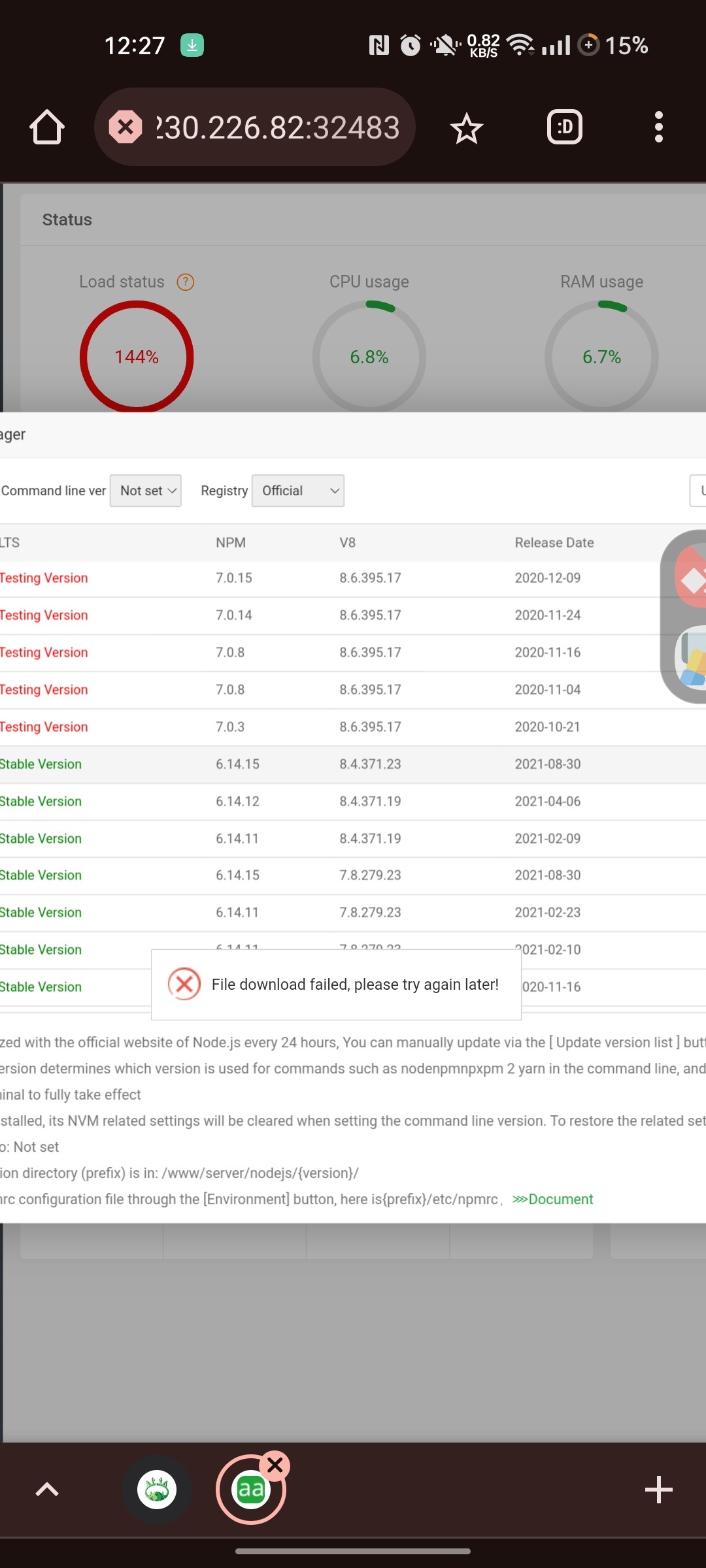 I have the same problem, I can't install node in any version, it keeps giving an error that nothing is displayed in the options and when it is displayed, and I order to install, it stays on a screen that looks like it's going to start downloading but the download never starts and gives an error.....