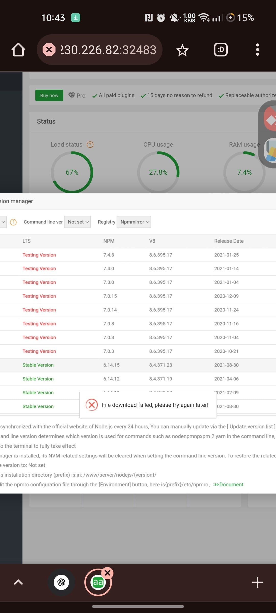 I have the same problem, I can't install node in any version, it keeps giving an error that nothing is displayed in the options and when it is displayed, and I order to install, it stays on a screen that looks like it's going to start downloading but the download never starts and gives an error.....