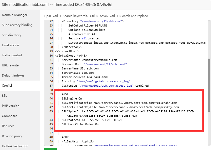 aaPanel_Kern I have tried several certificates, both free and paid, all give the same error. Also just now I SSHed into the server and checked under the path "/www/server/panel/vhost/cert/"my site .com" , there I could only see two files, "fullchain.pem" and "privkey.pem“,so I manually created "cert.pem" and pasted the SSL certificate in it, saved it. Although this still didn't work. But I read online there's supposed to be three files in this path, so mine the "cert.pem" was missing. Although even after I manually created and added this file, it still doesn't work, reports the same error when saving SSL info from aapanel.
