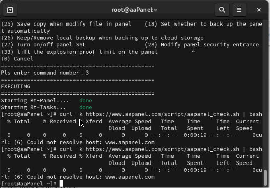 aaPanel_Kern aaP_imogiridigital Hello, please check if the network is normal? You can use bt 14 to view the full link You can use bt 22 to see if there are any error logs