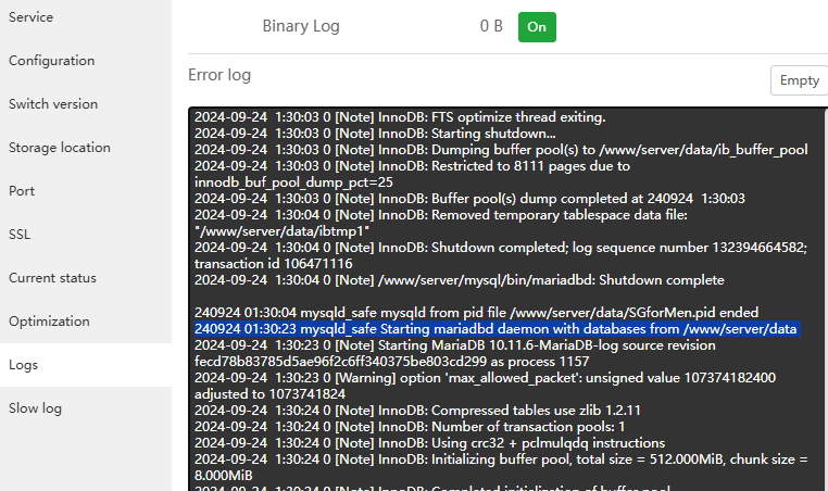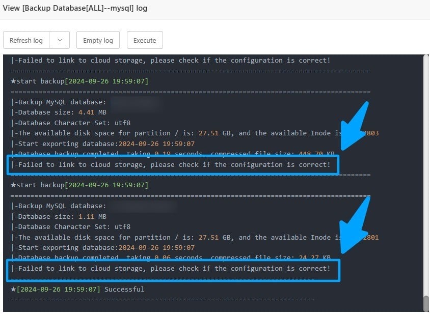 I am having problems with version 7.0.9, the database backup system is not running normally in the cron settings provided by aapanel. Here is the error log that occurs when running cron backup database all: