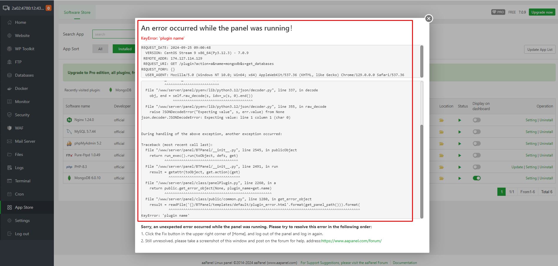 So, after MongoDB finished installing,,, I had click the "Database" button from the Settings of "MongoDB",,, and I got this error!