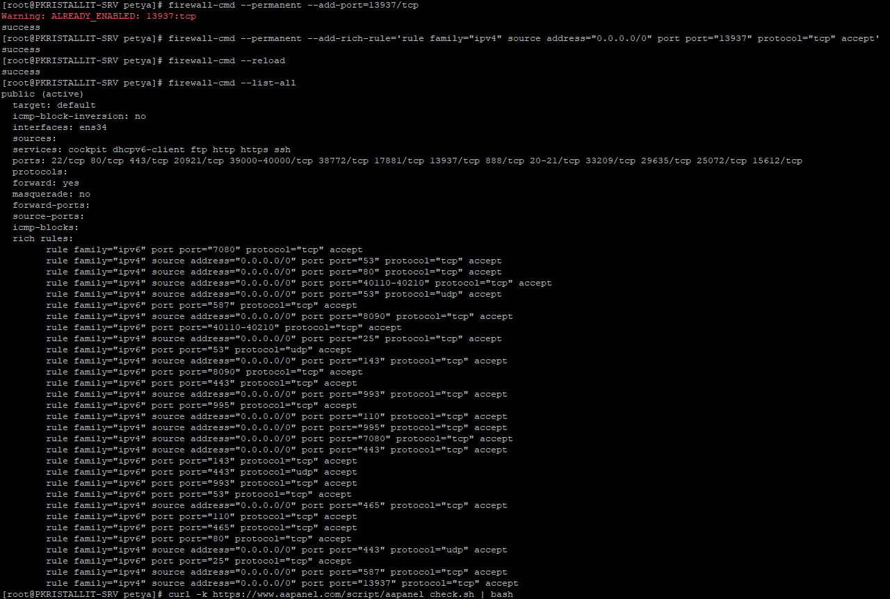Hi. I have a problem. After installing the panel, I cannot access it. in the browser, I get the error ERR_SSL_PROTOCOL_ERROR. I tried to run sudo bt 27 after that I get the error ERR_CONNECTION_RESET when trying to open the panel via http. Tell me what to do?