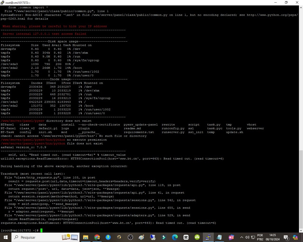 pagonejando Ainda não consegui resolver o problema, eu não consigo nem acessar o aapanel, sempre tem acontecido isso. vou tentar esse comando aí pra ver o que vai dá.