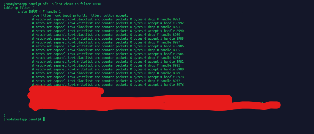mateus1020 Hi! In our servers, we replace the iptables to nftables. Too many comments has automatically adding on INPUT tables: Some trick to solved it? we do not use the aapanel firewall, only the cutom nftables rules. Thank you!
