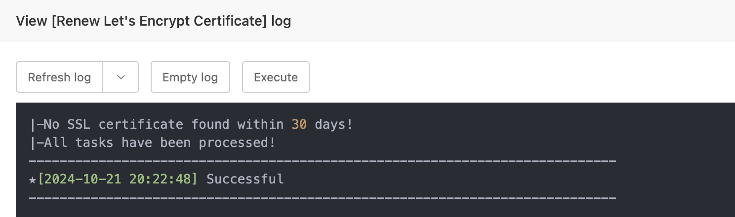 aaP_brunoviver10 Cron job no auto renew Hi, team! Please, when I checked, the SSL auto-renewal was not work, and after clicking to execute the cron job, the domain did not appear. How fix it SSL auto-renewal back to work? Thanks you