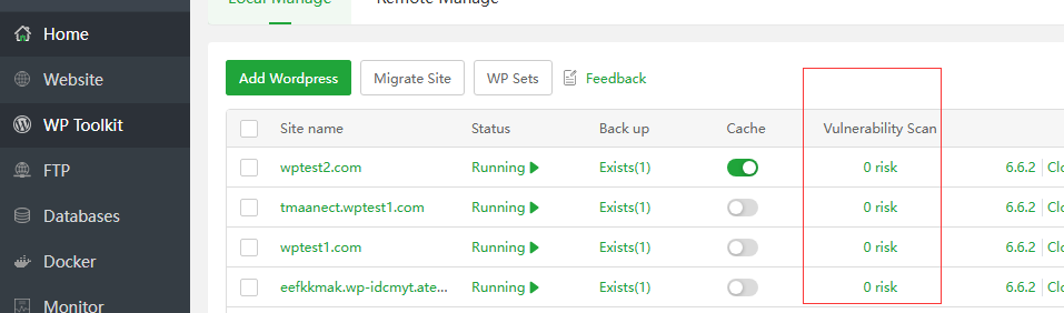 aaP_huynd1904 I mean cPanel and CyberPanel have tools that scan existing websites and add them to WP Toolkit if they are WordPress sites. It seems like aaPanel doesn't have that tool.