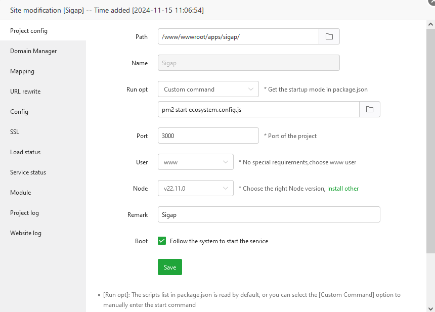 I have next js project I add website in node project, setup the run opt with customize pm2