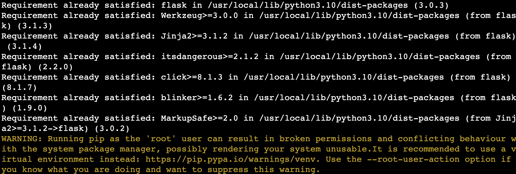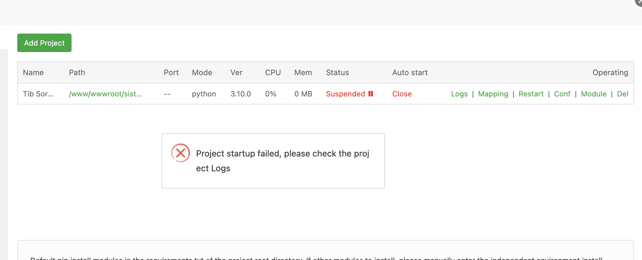 ByEzel @aaPanel_Kern I can't start my Flask project. and I can't install modules System: Ubuntu 22.04.5 LTS x86_64(Py3.12.3)