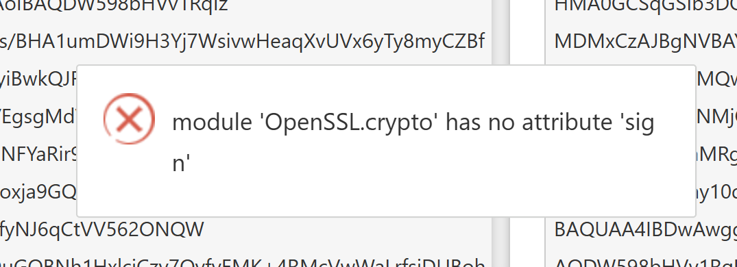 PronHouse I found an error when updating the certificate, how can I fix it?: module 'OpenSSL.crypto' has no attribute 'sign'