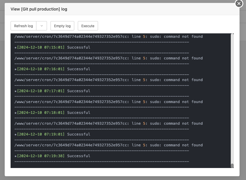 rid3xyoy I got a problem: /www/server/cron/a8b14014384bbf034baec9ae5fe2dcb4: line 5: sudo: command not found line 5: sudo -u root bash -c '#!/bin/bash The problem is that the server does not have the sudo command installed.