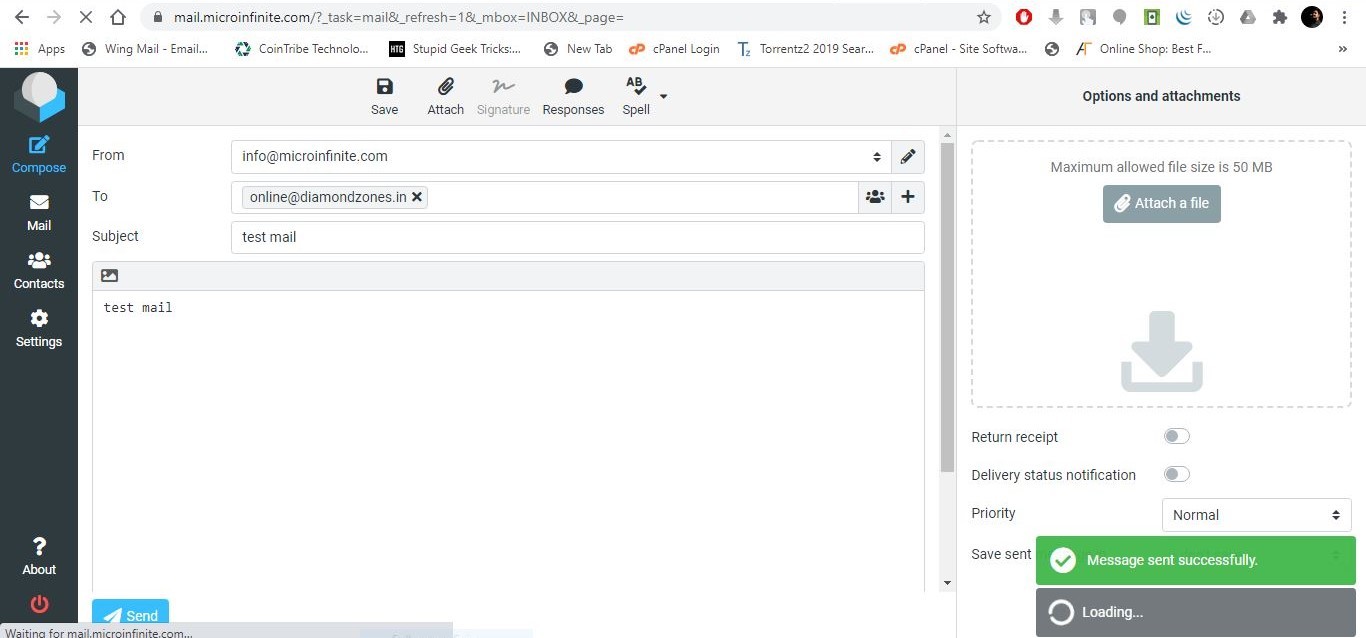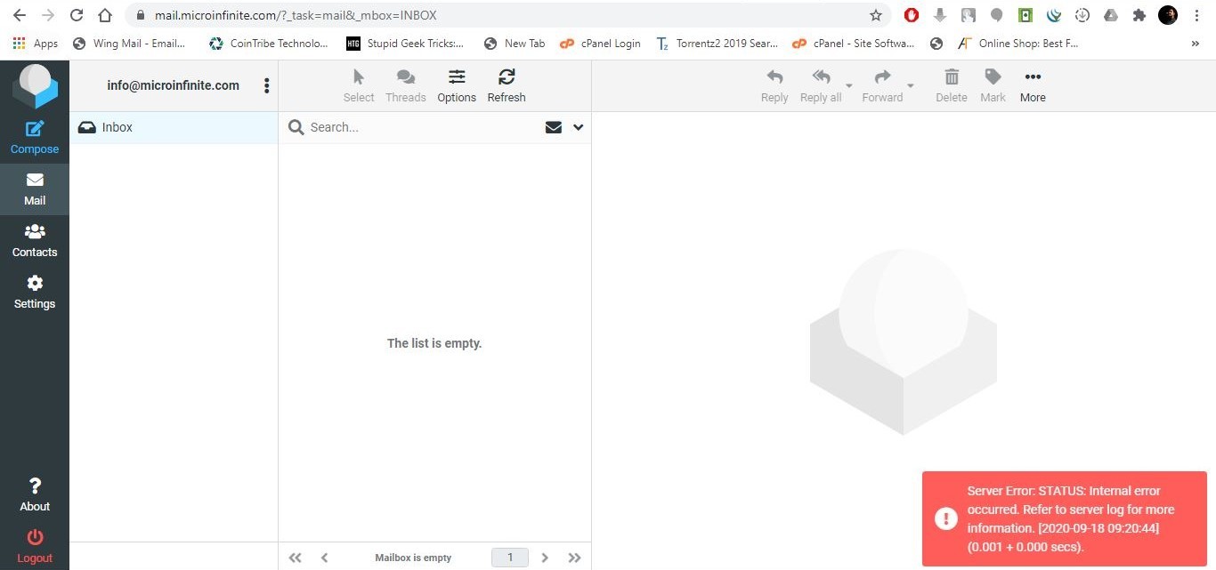 i installed Roundcube (mail.microinfinite.com) . its also sending email successful but not delivered nor receiving. ( Screenshot attached)