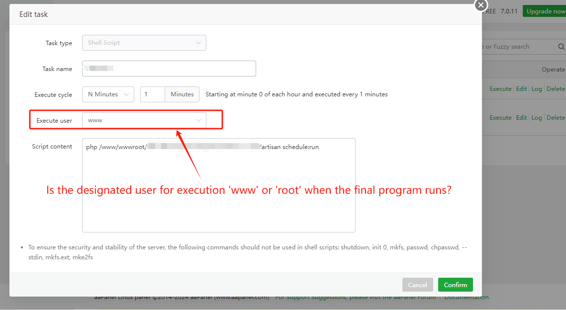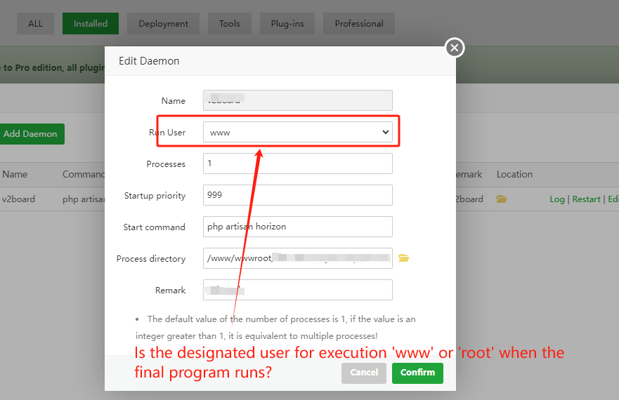 aaP_2423550953 Cron and Supervisor both specify the executing user 'www'. After this setting, is the actual executing user of the program 'www' or 'root'?Thank you everyone